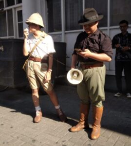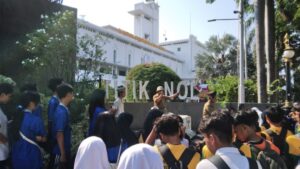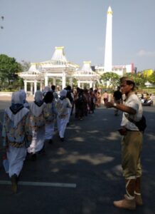 Para pelajar didampingi oleh kakak-kakak pemandu dari Begandring Soerabaia, Bangiler Reenactor, Soerabaia Combine Reenactor dan Sepanjang Heritage yang menjadi mitra Pemerintah Kota Surabaya dalam pelestarian nilai sejarah yang berkaitan dengan memori kejuangan dan kepahlawanan.