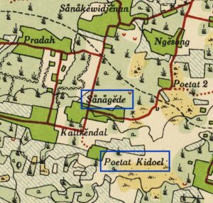 Berdasarkan Peta lama terbitan tahun 1892, di kawasan tersebut tertulis dua nama Dusun yaitu : “Sånågědé” dan “Poetat Kidul”. Sebelah barat posisi dua Dusun tersebut berada, terdapat Dusun “Kali Kěndal”